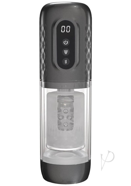 Pumped Vortex Multi Function Suction Rotating Thrusting Rechargeable Masturbator - Gun Metal