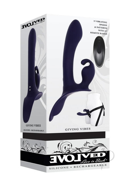 Giving Vibes Rechargeable Silicone Triple Stimulation Strap-On - Purple