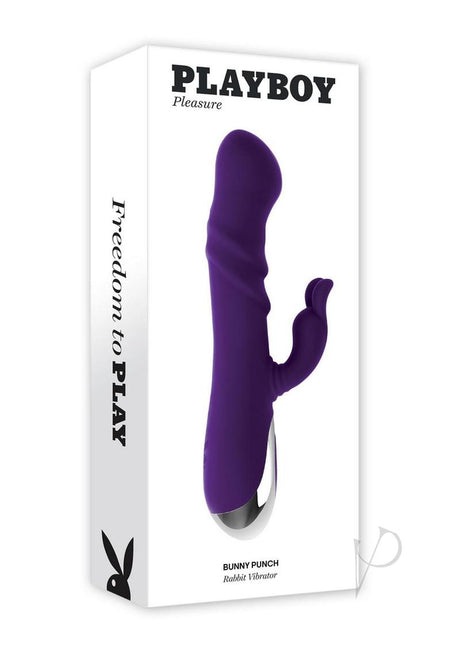 Playboy Bunny Punch Rechargeable Silicone Rabbit Vibrator with Twirly G-Spot Head - Purple