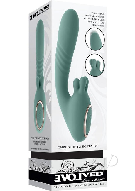 Thrust into Ecstasy Rechargeable Silicone Rabbit Vibrator - Green