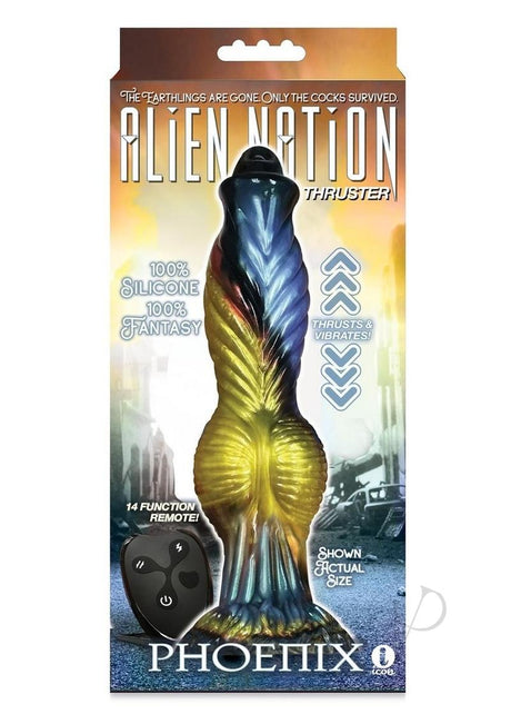 Alien Nation Phoenix Silicone Thrusting Dildo - Green/Yellow/Black