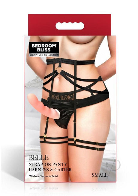 Bedroom Bliss Belle Strap-On Panty Harness and Garter - Small - Black