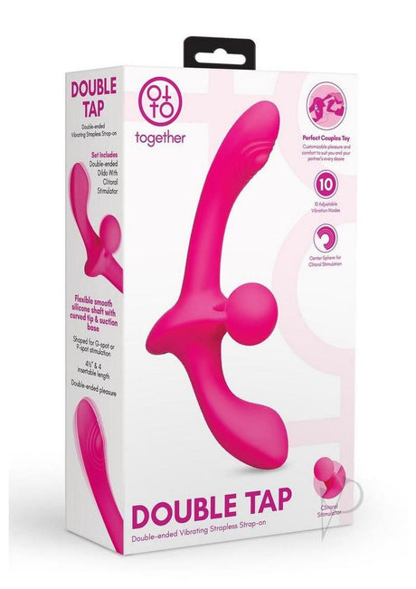 Together Double Tap Rechargeable Silicone Double-Ended Vibrating Strapless Strap-On - Pink
