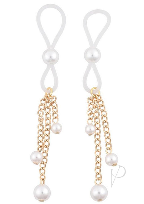 Sex and Mischief Pearl Nipple Ties - White/Gold