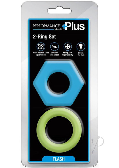 Performance Plus Flash Silicone Glow in the Dark Cock Ring Set (2 Piece) - Multicolor