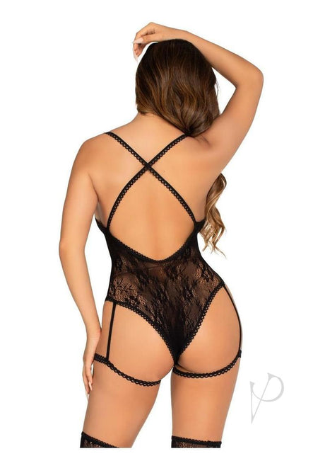 Leg Avenue Lace Garter Teddy with Keyhole Front and Crossover Back Straps - Black - O/S