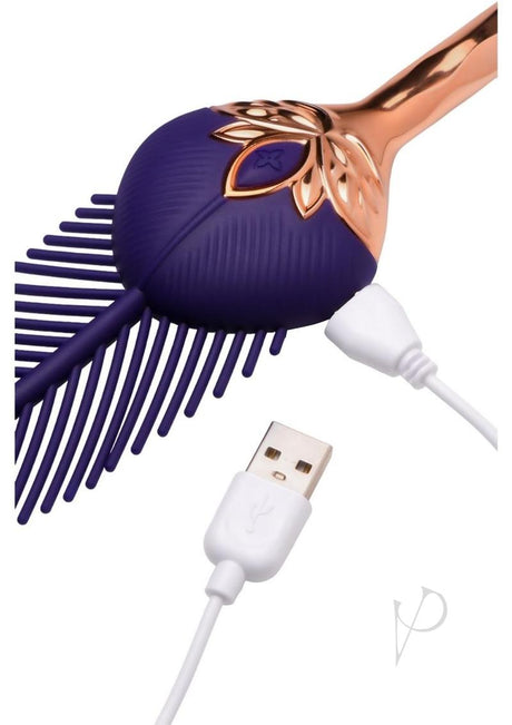 Master Series The Tickler Vibrating Rechargeable Silicone Feather Tickler - Purple/Rose Gold