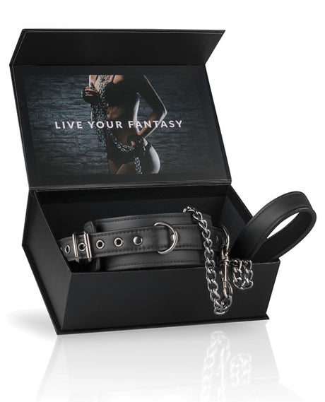 Easy Toys Faux Leather Collar w/Nipple Chains - Black