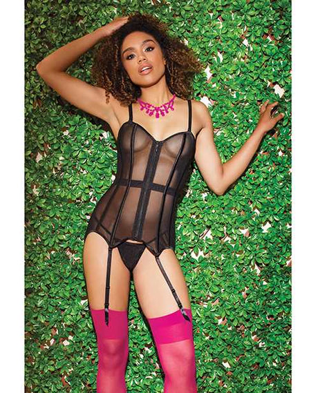 Underwire Mesh Bodysuit w/Garterbelt Black 1X/2X