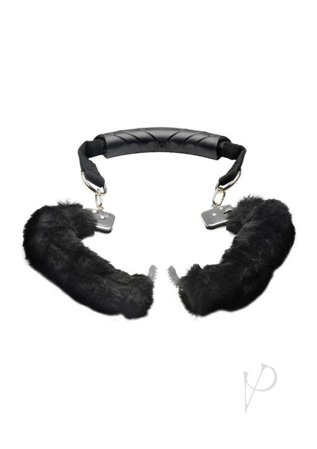 Master Series The Handler Furry Handcuffs with Handle - Black/Silver