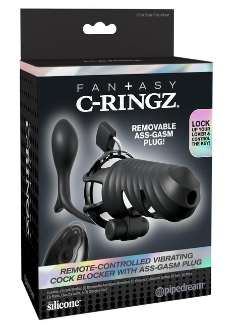 Fantasy C-Ringz Remote-Controlled Vibrating Cock Blocker with Ass-Gasm Plug - Black