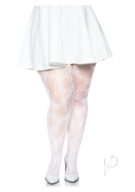 Leg Avenue Butterfly Net Tights - 1X/2X - White