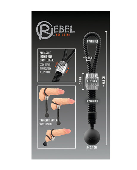 Rebel Heavy Rope Cock Lasso w/Ball - Black