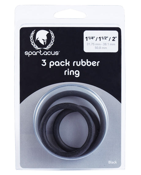 Spartacus Rubber Cock Ring Set - Black Pack of 3