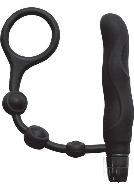 Prostatic Play Explorer Silicone Cock Ring with Butt Plug - Black