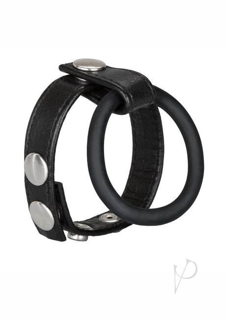 Rouge Three Piece Divider Adjustable Snap Leather Cock Ring - Black
