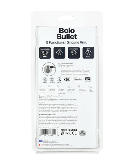 PowerBullet Bolo Bullet Silicone Rechargeable Cock Tie - Black/Silver