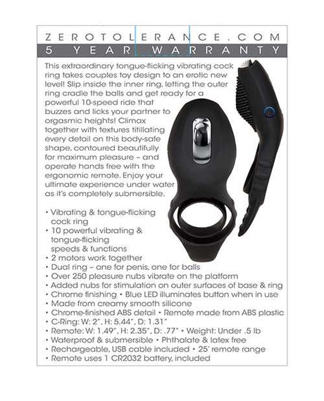 Trinity Men 7X Rechargeable Silicone Cock Ring with Taint Stimulator and Remote Control - Black
