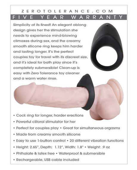 Zero Tolerance Cock Armor Rechargeable Silicone Vibrating Cock Ring with Long Bullet - Black