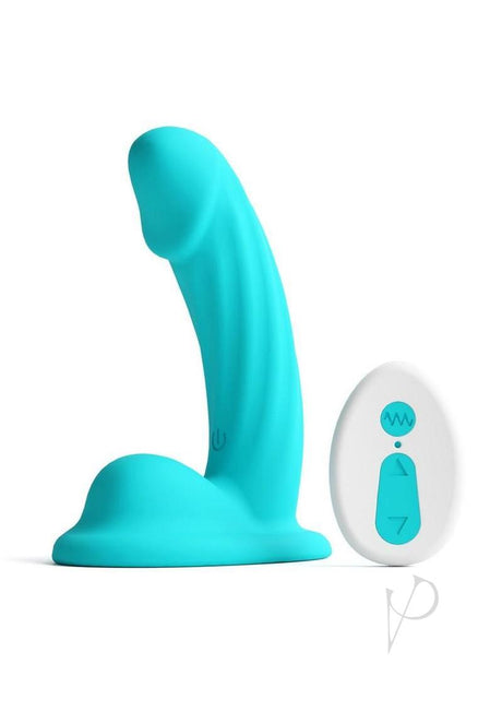Colours Curve Silicone Vibrating Dildo with Remote Control 5in - Teal