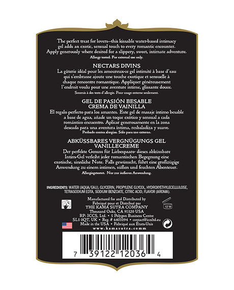 Kama Sutra Divine Nectars Water Based Flavored Body Glide Lubricant 2oz - Vanilla Crème