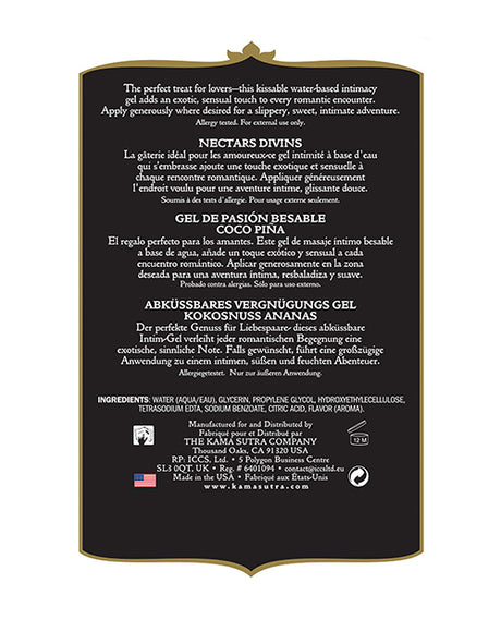 Kama Sutra Divine Nectars Water Based Flavored Body Glide Lubricant 2oz - Coconut Pineapple