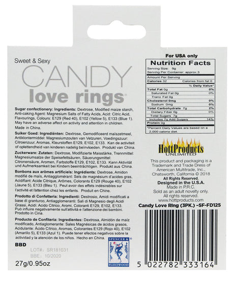 Sweet and Sexy Candy Love Rings 3 Each Per Pack
