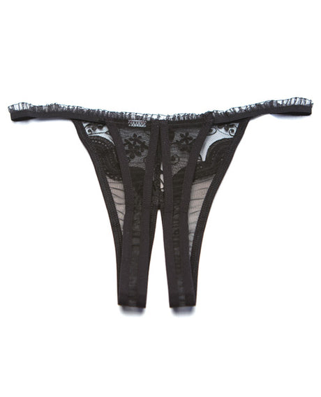 Rene Rofe Crotchless Lace Thong w/Lace Up Back Black S/M