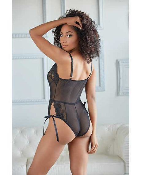 Allure Angelina Sheer Mesh Under Bust Teddy Black L/XL