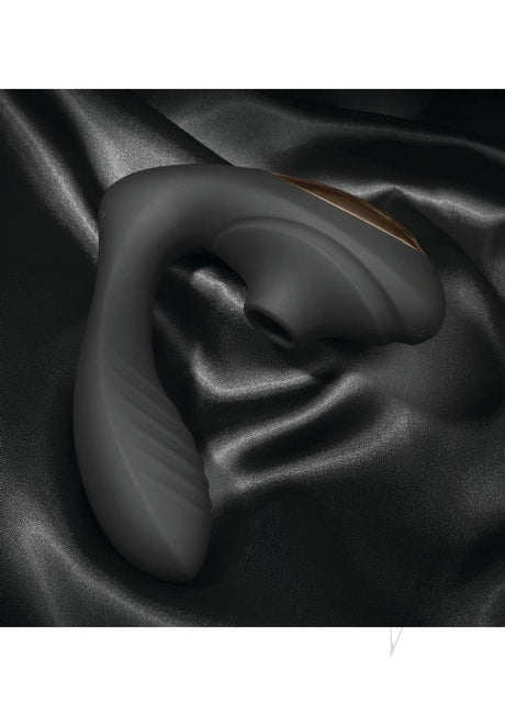 Coquette Royal Embrace Rechargeable Silicone Dual Vibrator with Clitoral Stimulator - Black/Gold