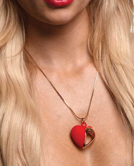 Charmed 10X Vibrating Silicone Heart Necklace Rechargeable Stimulator - Red/Rose Gold