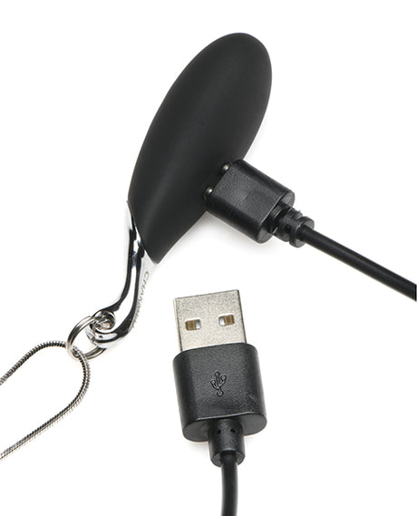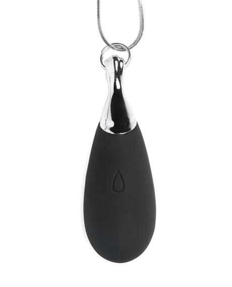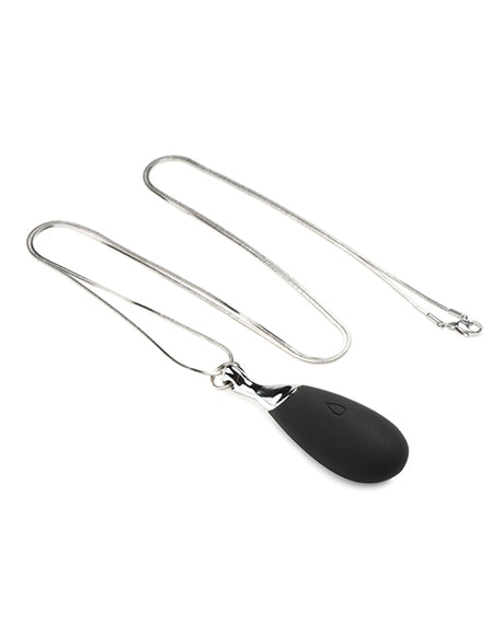Charmed 10X Vibrating Silicone Teardrop Necklace Rechargeable Stimulator - Black/Silver