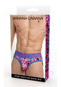 Banana Cabana-Jock: Chic in blue and pink. Soft 90% Nylon, 10% Elastane fabric for sleek, comfy fit. Ideal for a stylish everyday look.