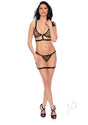 Barely Bare Strappy Harness Bra and Panty Set - OS - Black