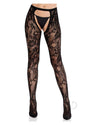 Eyelet Rose Lace Crotchless Tights with Cheeky Open Back - Black - O/S
