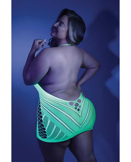 Glow Black Light Net Halter Dress Neon Green QN