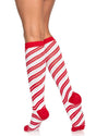 Leg Avenue Candy Cane Lurex Knee High Socks - OS - Red/White