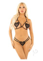 Leg Avenue Heart Applique Open Cup Bra and Pearl Strand Dual Strap G-String Panty - OS - Black