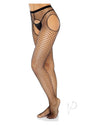 Leg Avenue Industrial Net Crotchless Garter Pantyhose - OS - Black