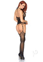 Leg Avenue Seamless Jacquard Lace Suspender Bodystocking - OS - Black