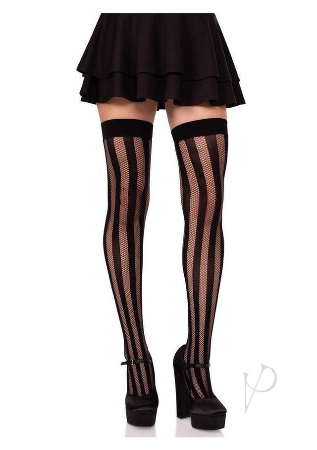 Leg Avenue Net and Opaque Striped Thigh Highs - Black - O/S