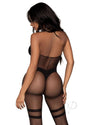 Leg Avenue Opaque and Sheer Keyhole Twist Halter Bodystocking - OS - Black