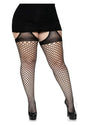 Leg Avenue Oval Net Suspender Hose with Opaque Top - 1X/2X - Black