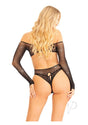 Leg Avenue Rhinestone Fishnet Crotchless Teddy with Lace Up Front Detail and Crossover Halter - OS - Black