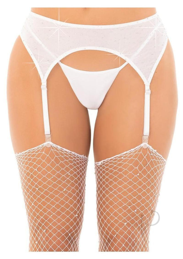 Leg Avenue Rhinestone Garter Belt - White - O/S