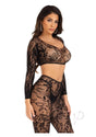 Leg Avenue Seamless Chantilly Lace Crop Top and Footless Tights (2 Piece) - OS - Black
