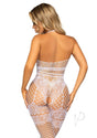 Leg Avenue Seamless Industrial Net Halter Bodystocking with Faux Lace Lingerie Detail - OS - White