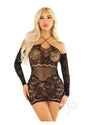 Leg Avenue Seamless Lace Net Off the Shoulder Mini Dress with Twist Halter Strap - OS - Black