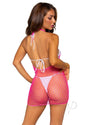 Leg Avenue Woven Net Twist Halter Mini Dress - OS - Neon Pink is backordered and will ship as soon as it is back in stock.