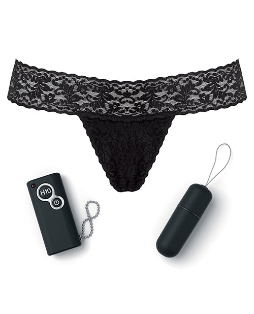 Caution, the Secret panty! will increase your intimacy as a couple. Not only is the lingerie sexy but your partner can discretely control the vibrations from a distance with the remote control. Remote controlled vibrating mini vibrator (16 to 26 ft.). 10 vibration speeds. Batteries included. Thong - one size. Secret panty! from Love To Love.
